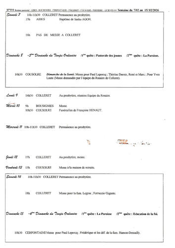 Feuille paroissiale du 7au 15 février 2026