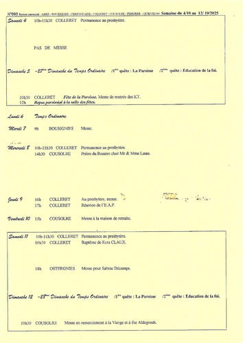 Feuille paroissiale du 4 au 12 octobre 2025