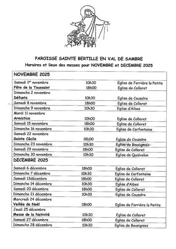 Messes de novembre et décembre 2025